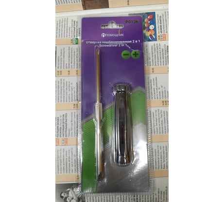 Отвертка переставная комбинированная 2 в 1 в блистере от бренда Помощник — это универсальный инструмент для завинчивания и отвинчивания крепёжных изделий с резьбой.