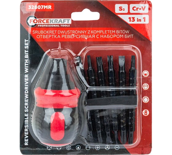 Отвертка реверсивная Forcekraft в комплекте с битами, набор FK-32807MR(62170)