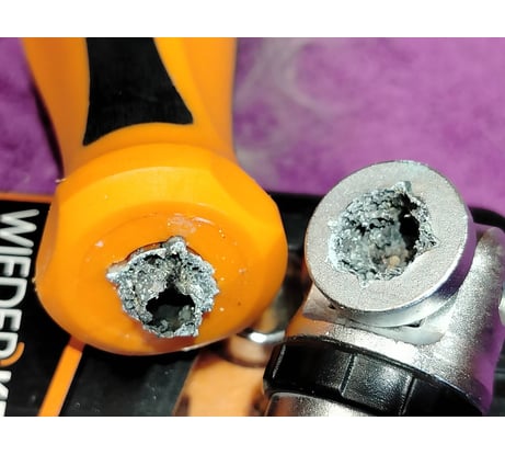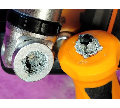 Раздражает люфт в фиксаторе угла наклона рукоятки большой отвертки. Через год активной эксплуатации начала иногда сбиваться трещетка, приходится периодически ее поправлять. Не промаркированы биты малой отвертки - приходится их подбирать методом проб и ошибок.