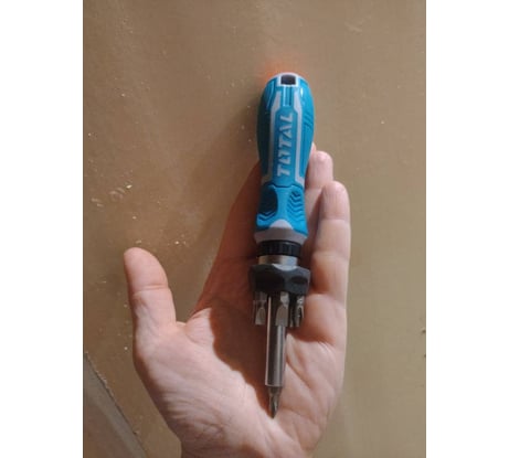 Нормальная отвёртка за смешные деньги для бытового использования. В руке лежит удобно. Сменные биты умещаются в рукоять. Наконечник магнитный! 👍👍👍