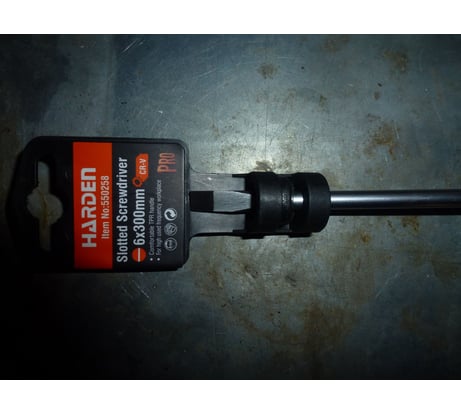 Отвертка шлицевая профи Harden серии Джет CRV 6х300 мм., показала проф пригодность при обслуживании теплотехнического оборудования. Отвёртка ровная без изгибов и что хочется отметить её прочность.
