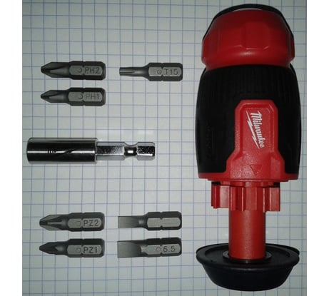 - Отвертка Milwaukee универсальная короткая 8 в 1 - 1 шт.