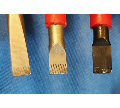 Ручка слишком большая для такого размера и качества жала отвёртки. При протяжке автоматов с особым рвением - скалывается сильнее чем аналогичные веровские, если тянуть без фанатизма - нормально. Честно говоря - не впечатлило. Вторая фотография - сравнение размера ручек с верой 1 х 5.5