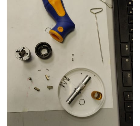 Конструкция кейса не очень удачная, деталь для фиксации рукоятки зачем-то сделана съемной и постоянно отваливается (попробую приклеить её). Механизм реверса намертво заклинило при третьем или четвертом использовании отвертки.