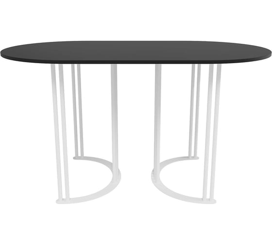 Овальный обеденный стол GENGLASS с белым металлическим подстольем и чёрной столешницей VIOLUR, 1400х800х750 мм GGT-20-3-2-14080