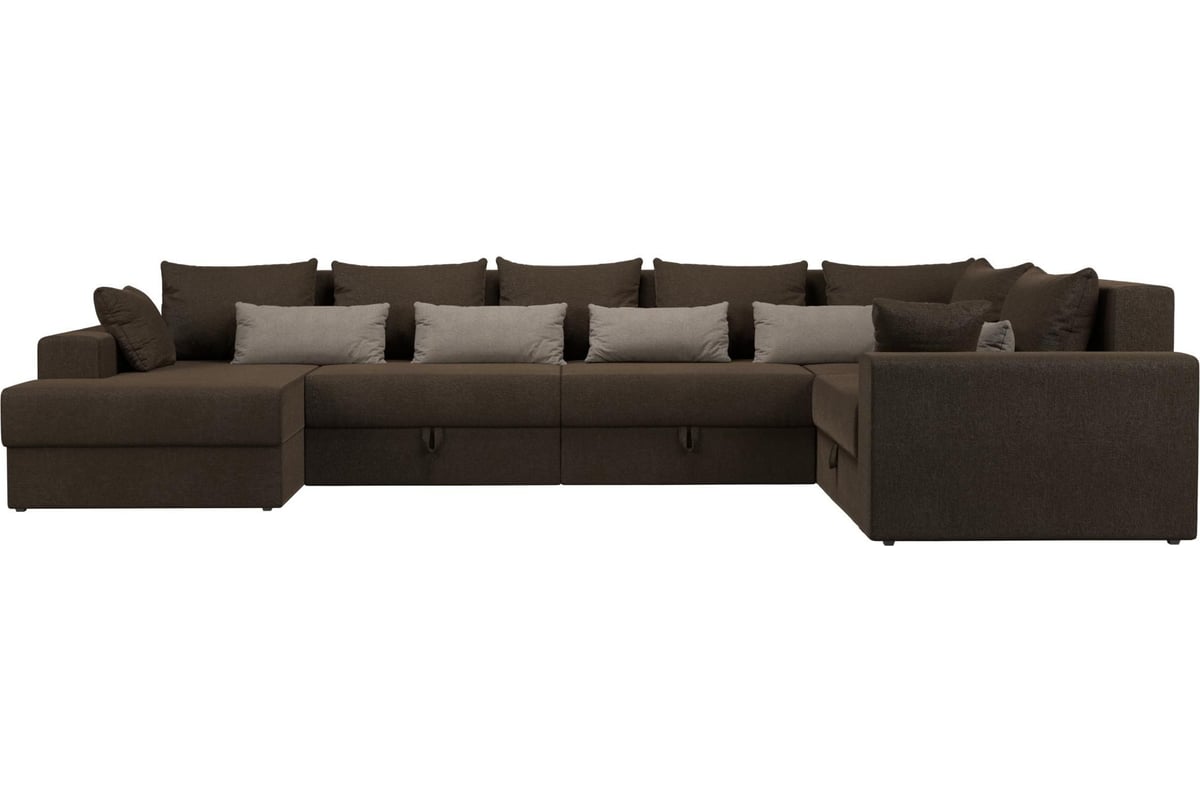П-образный диван Майами оттоманка слева полностью рогожка коричневая, подушки рогожка КОР/беж/кор Лига диванов 114800L
