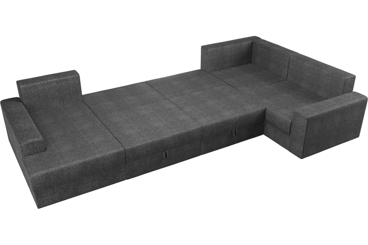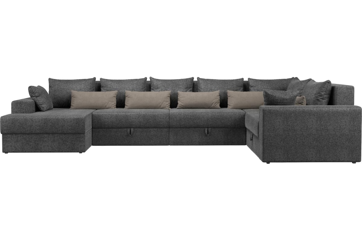 П-образный диван Майами оттоманка слева полностью рогожка серая, подушки рогожка СЕР/беж/сер Лига диванов 114801L