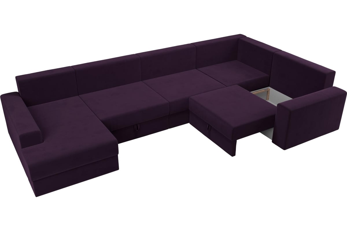 П-образный диван Майами оттоманка слева полностью велюр фиолетовый, подушки велюр ФИО/фио/фио Лига диванов 114818L