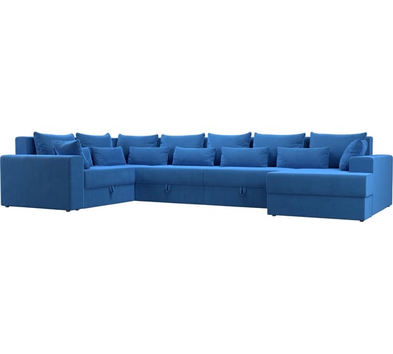 П-образный диван Майами оттоманка справа полностью велюр голубой, подушки велюр ГОЛ/гол/гол Лига диванов 114825