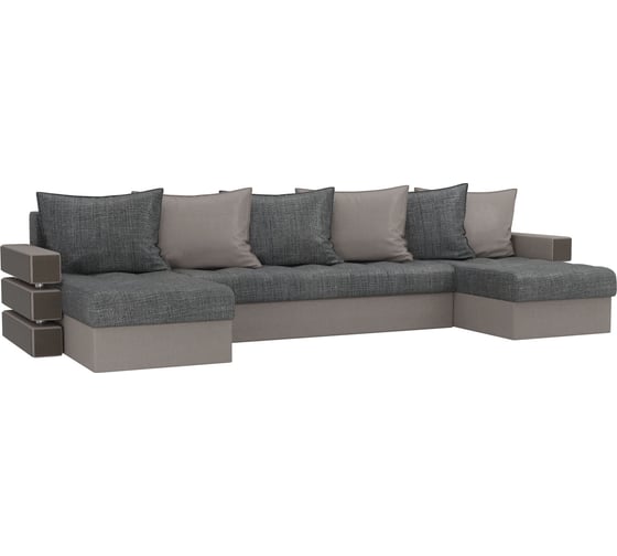 П-образный диван Лига диванов Венеция основа рогожка серая, компаньон рогожка бежевая 108456