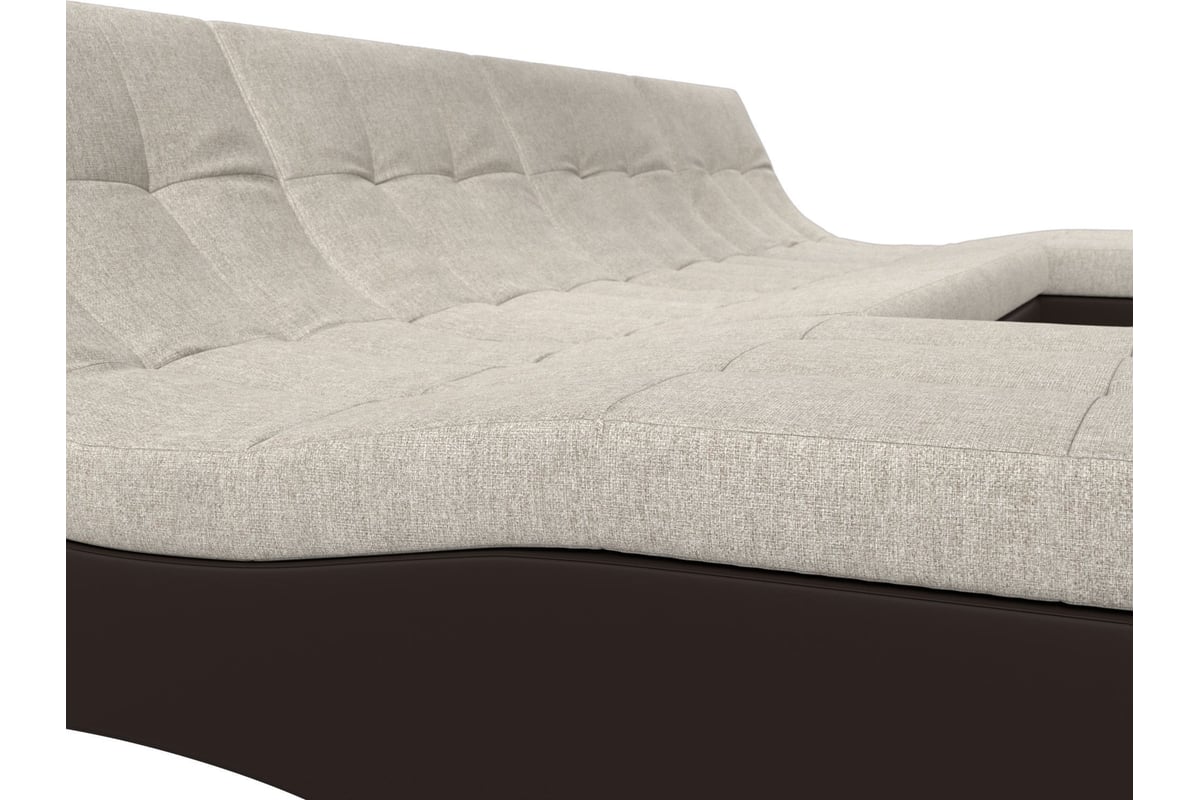 П-образный модульный диван Лига диванов Монреаль основа рогожка бежевая, компаньон экокожа коричневая 111566
