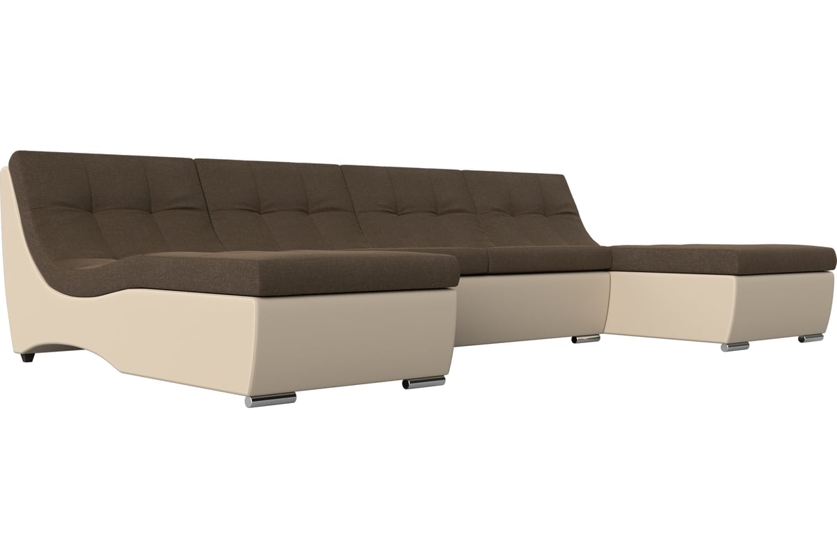 П-образный модульный диван Лига диванов Монреаль основа рогожка коричневая, компаньон экокожа бежевая 111567