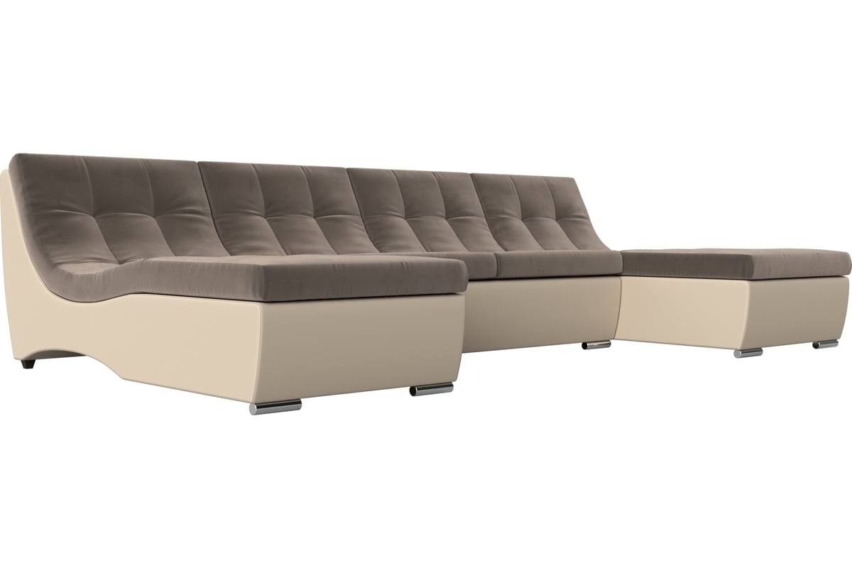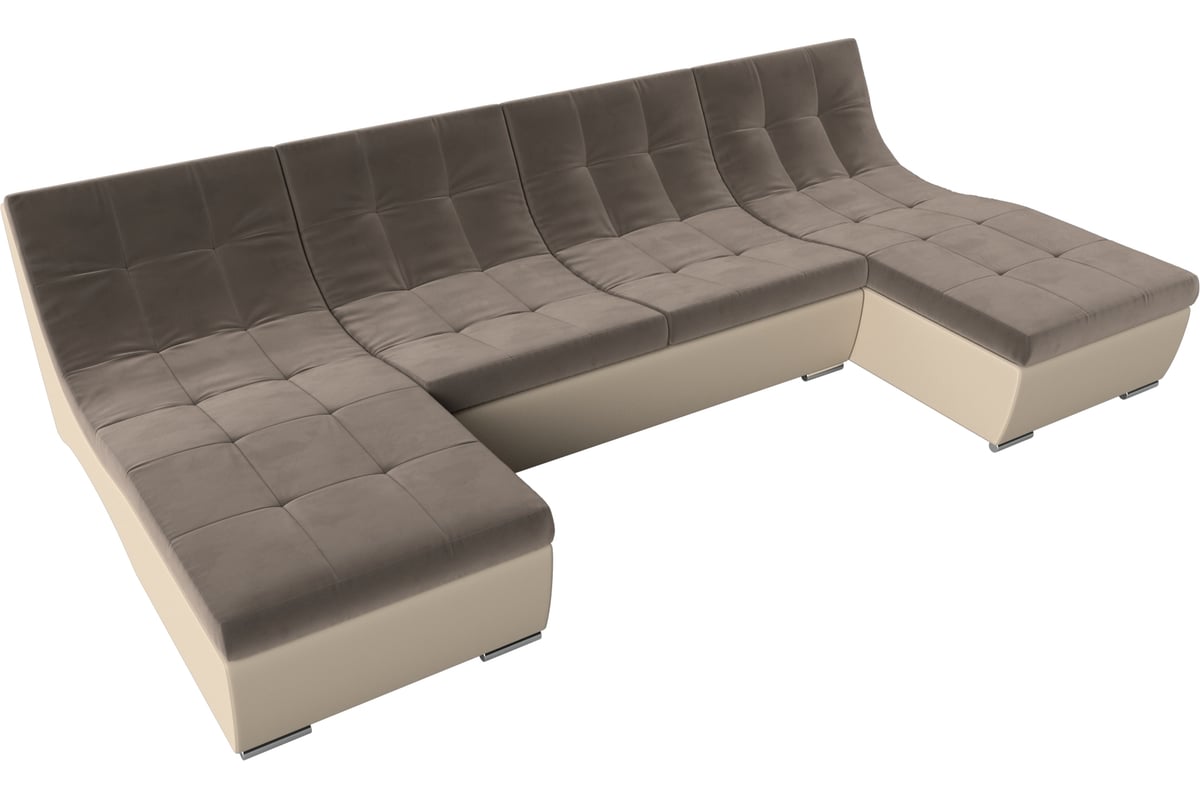 П-образный модульный диван Лига диванов Монреаль основа велюр коричневый, компаньон экокожа бежевая 111548
