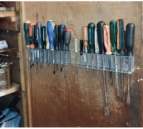 Использую как держатель отвёрток, поскольку отверстия расположены соосно