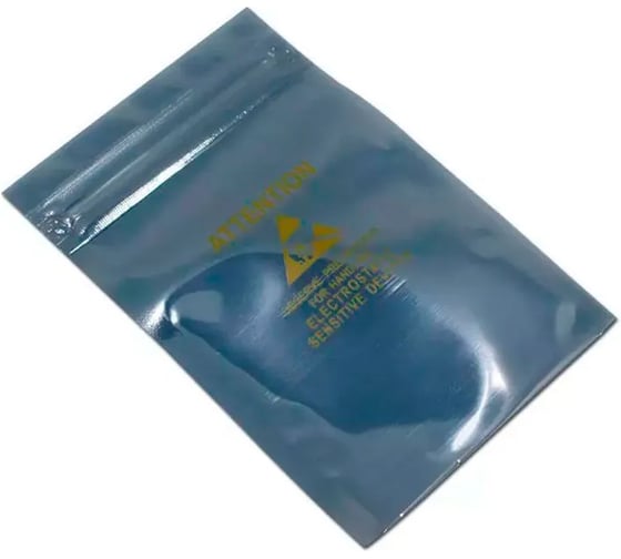 Антистатические металлизированные пакеты 250х350мм 80 мкм без ZIP-замка подходят для упаковки печатных плат, микросхем и других изделий, чувствительных к электростатическому разряду.