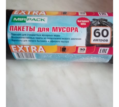 Технические характеристики пакетов для мусора MIRPACK EXTRA 60573001