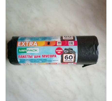 Пакеты для мусора MIRPACK "EXTRA" 60 литров, в рулоне 30 штук, ПНД, 12 мкм, размер 60x70 см, черные 60573001
