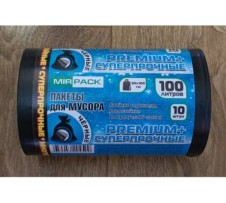 Пакеты для мусора MIRPACK "PREMIUM+" 100 литров, в рулоне 10 штук, ПВД, 70 мкм, размер 60x100 см, черные 1001076