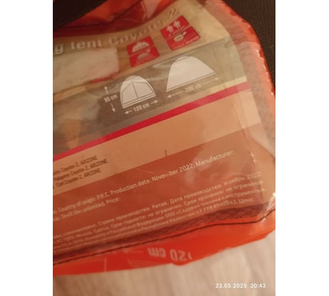 Потрепанный чехол палатки с небольшими порезами. Дата изготовления ноябрь 2022 года.
