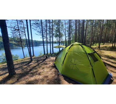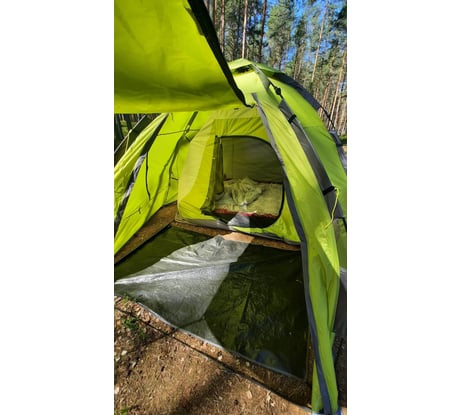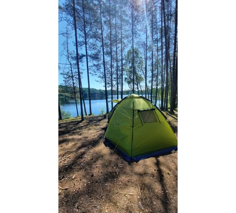 Отличная палатка на троих. Удобная и быстрая установка и разборка. Хорошая вентиляция.