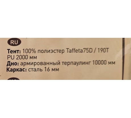 - Пол выполнен из прочного и надежного терпаулинга (армированного полипропилена), устойчивого к механическим повреждениям; при водостойкости 10000 мм/в.ст - не промокнет даже в луже