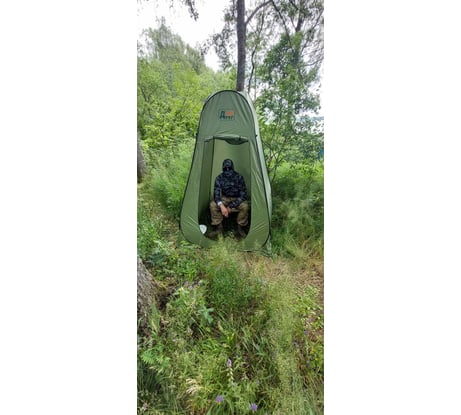 Купили такую палатку для организации кемпинга во время стоянок. Палатка оказалась просто огромная, в ней разместились биотуалет, душ, а также использовали её как раздевалку. На самом деле оказалась очень удобной из-за свой высоты. Всем рекомендую!