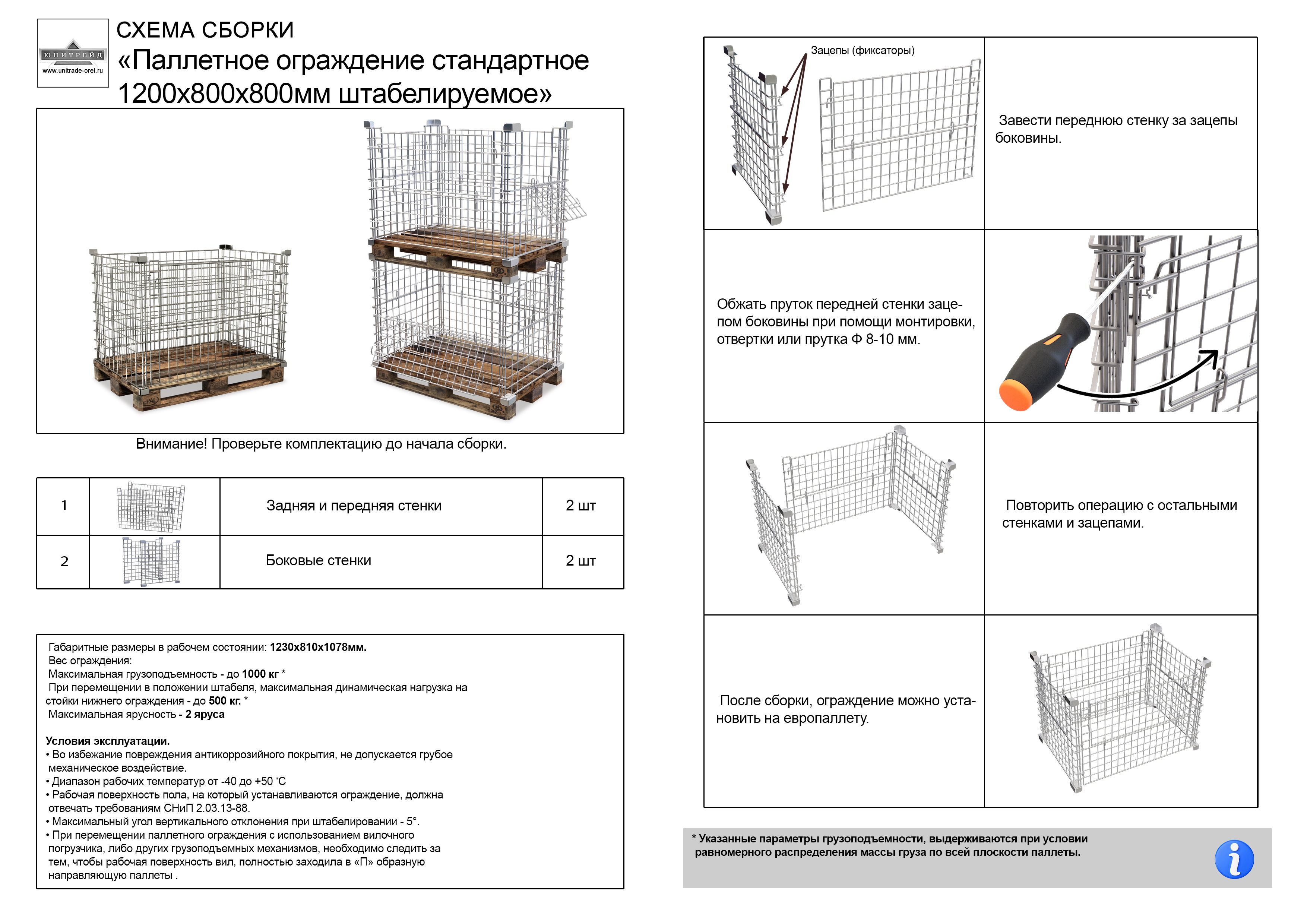 Паллетное ограждение стандартное Юнитрейд 1200х800х800мм, штаб., яч. 65х65мм, о., 04.10.008.01.18.0001.00