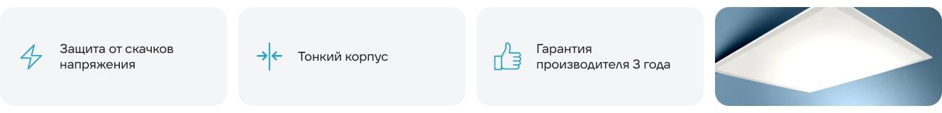 Ультратонкая светодиодная панель ДВО-SLIM имеет толщину корпуса 8мм, выполнена из прочных и качественных материалов и гарантирует сохранение геометрии и долгий срок службы. Высокая светоотдача и отсутствие пульсаций создают максимально комфортное, приближенное к естественному освещение. Светильник имеет встроенную защиту от скачков напряжения. Подходит для встраиваемого монтажа в потолки типа Армстронг и подвесного монтажа.