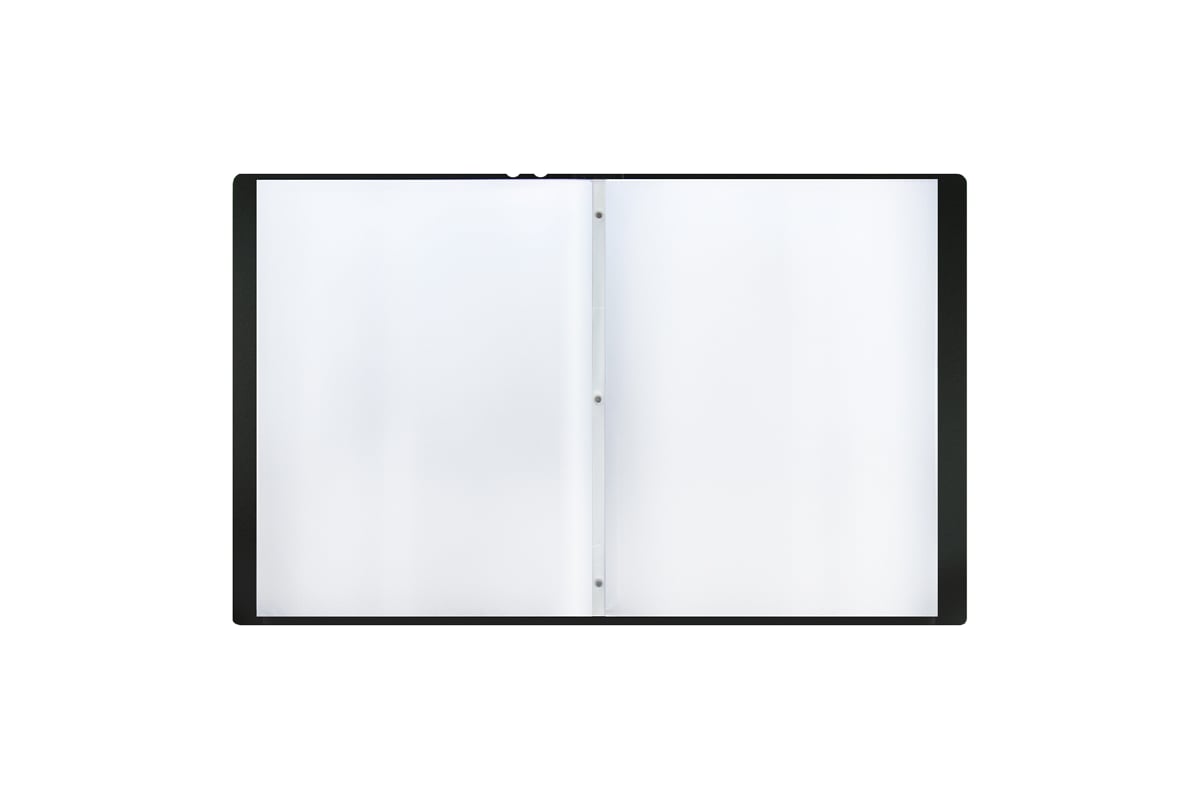 Содержит утолщенные прозрачные вкладыши, благодаря чему не требует перфорации бумаги.