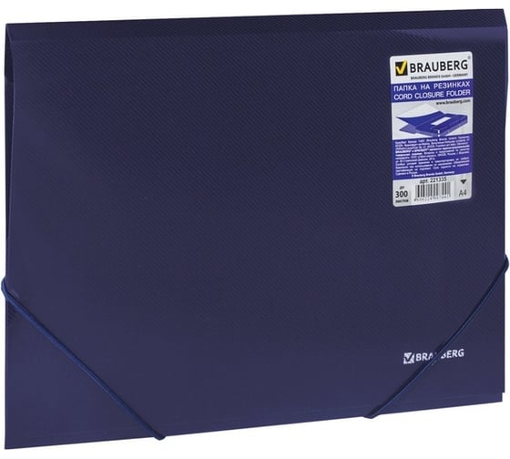 Папка на резинках BRAUBERG диагональ, темно-синяя, до 300 листов, 0.5 мм 221335
