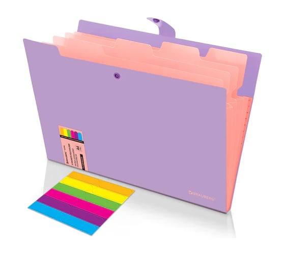 Папка-органайзер BRAUBERG на кнопке 5 отделений, Extra, А4, лиловая с персиковым, 274098