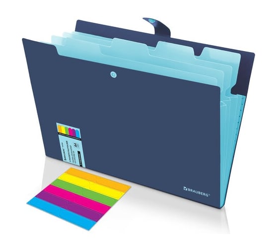 Папка-органайзер на кнопке BRAUBERG Extra 5 отделений, А4, синяя с голубым 274096