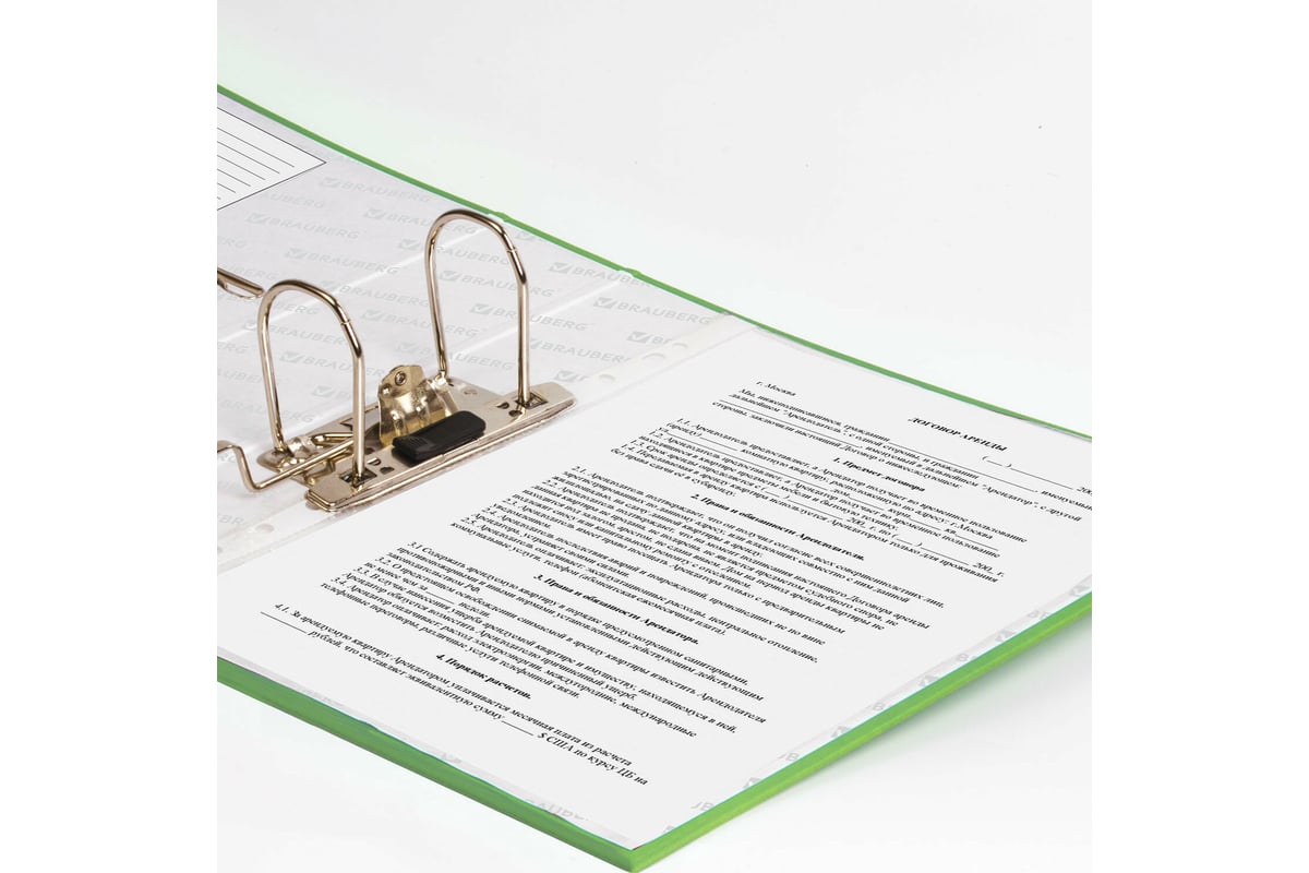Папка-регистратор BRAUBERG ламинированная, 80 мм, светло-зеленая 222070 предназначена для хранения и транспортировки документов.