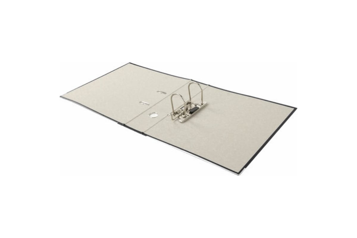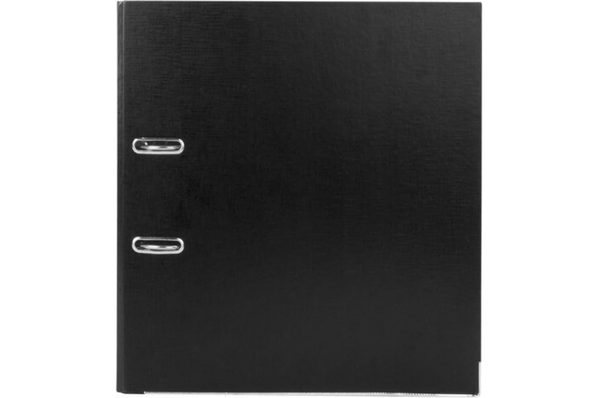 Папка формата А4 с вертикальной ориентацией изготовлена из плотного картона, ламинированного черной пленкой из полипропилена, который не имеет резкого запаха и отличается долговечностью и морозоустойчивостью. Благодаря такому плотному покрытию допустима влажная уборка изделия. Ширина корешка в 75 мм позволяет разместить до 500 листов. Нижние края папки защищены металлическими уголками, что увеличивает срок службы в 2 раза. Прорези для колец на внешней крышке позволяют оставаться папке закрытой даже при большом количестве бумаг, а надежный арочный механизм легко справляется с ежедневными нагрузками. Корешок снабжен этикеткой для маркировки содержимого, что позволяет структурировать информацию. Такая папка станет незаменимым помощником для работников с документацией, а строгий черный цвет папки-регистратора отлично впишется в офисныйй интерьер.