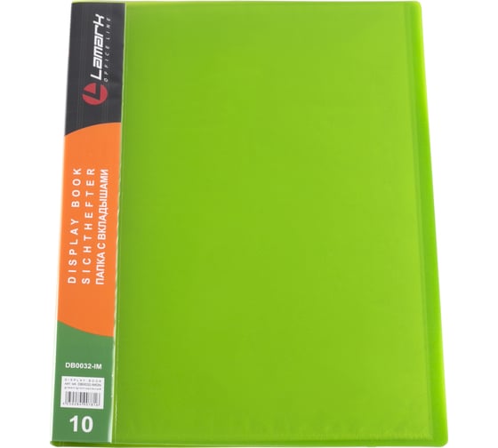 Папка с 10 вкладышами Lamark 0,60 мм, жесткая, неон, зеленая DB0032-IMGN предназначена для подборки, систематизации и хранения документов. Содержит в себе прозрачные вкладыши формата А4.