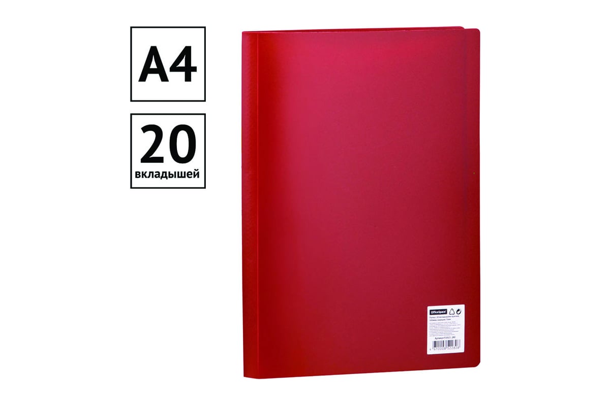 Папка с 20 вкладышами OfficeSpace 17 мм, 400 мкм, красная F20L3_280 предназначена для хранения и переноски документов.