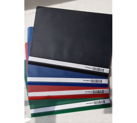 Удобно, что в одном заказе сразу получаешь комплект из 4 основных цветов. Не нужно выбирать одинаковые из наличия, чтобы были нужных цветов и делать 4 разных заказа. Обложка папок средней толщины, верхняя обложка полупрозрачная (см. фото)