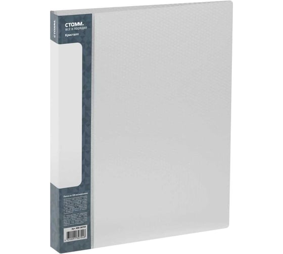 Папка со 100 вкладышами Стамм Кристалл А4, 30мм, 800мкм, пластик, белый ММ-30794