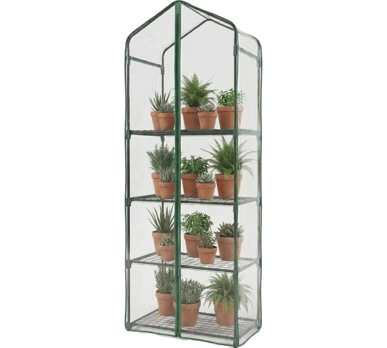 Парник на подоконник ГеоПластБорд, 59x39x160 см, с чехлом из пвх, 4 полки, зеленый TM59.39.160