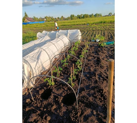 Изделие используется совместно с укрывным материалом для защиты растений от неблагоприятных погодных условий.