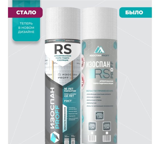 Изоспан RS — трехслойный материал, выполненный из полипропиленового нетканого полотна и полимерной пленки, армированных сеткой для достижения высокой прочности. Одна сторона материала гладкая, другая — шероховатая.