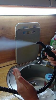 Не отвечает заявленной мощности. Можно держать руку на струе пара. Буду возвращать