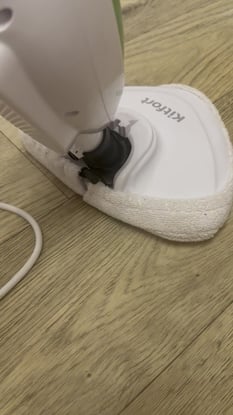 Тряпка слетает, лучше заранее смачивать пол. Довольно тяжелая, особенно в роли отпаривателя. Нет механизма для закручивания провода.