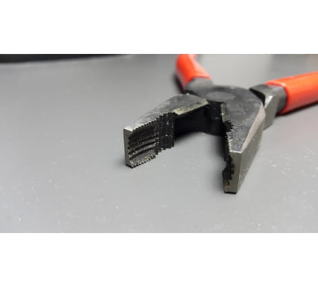 "Фишка" данных плоскогубцев в том, что у них в переднем торце кромок профрезерованы ПРОДОЛЬНЫЕ треугольные канавки в полукруге (на всех остальных плоскогубцах такого нет, там насечки поперёк губок). Ими очень удобно крутить винты за выступающую головку, если шлиц внутри(крестовой или плоский) срезался. Твердость губок(не знаю сколько HRC по Роквеллу, на сайте не указана) даёт врезается в металл головки и образует зубчики, как на шестерёнке, потому и захват винта крепкий, не проскальзывает. Саморезы таким образом выкручивать ещё не пробовал, а откусывать(черные саморезы 3,5 х 40мм) легко получается, кромке хоть бы хны, никаких следов деформации. Ручки держатся крепко не прокручиваются. Маслостойкие. Люфт в шарнире минимальный, то что надо.