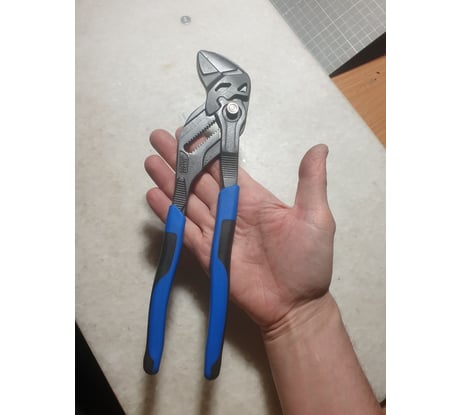 Выглядит хорошо, нормаьные двухкомпонентные рукояти. Губки закалены до 50-53 по ощущениям. Люфт свободной губки небольшой в посадочном месте. Из плюсов пожалуй всё. Сам механизм нужно дорабатывать с полной разборкой и шлифовкой всех деталей . Кнопка впрессованна, пришлось точить новую после разборки. Ручки придётся сажать самому, вклеены на отвали. В общем и целом есть ключи интереснее даже в таком бюджете.