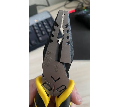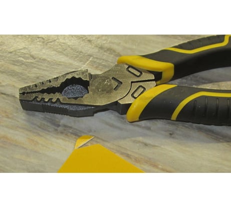Очень хороший инструмент На мой взгляд - лучшие пассатижи 200 мм в категории "до 1000 рублей" Сначала купил такие пассатижи 180 мм, понравилось, решил купить еще и на 200 мм. Два последних фото - сравнение этих пассатижей. В руке лежат очень хорошо, удобные, ручки мягкие, пласторезина. Люфта нет. Заточка и сведение кусачек ровные. Металл хороший, зазубрин нет. Между губками зазор 0,2 мм - как у пассатижей "книпекс" 03 серии. На вопрос "зачем книпекс делает такой зазор", получил ответ - "электротехническая серия, для надежности пользования кусачками". То есть это не брак, зазор сделан преднамеренно. Кусачки хороши. Медная моножила 1,5 и 2,5кв мм, Медный многожильный провод от 0,35 до 2,5 кв мм, Некаленый "советский" гвоздь 1 мм, шуруп 3 мм Некаленый "советский" винт М3, Алюминиевая шина 5х1,5мм ПВС и ВВГ 3х1,5, 3х2,5 Все это взял сразу, рез чистый, никаких чрезмерных усилий не прилагал Нейлоновые хомуты кусает чисто, также чисто перекусил лист бумаги. Попробовал взять металл губок надфилем - берет, но с очень большим трудом. Исключительно хорошие впечатления. Претензий нет. Рекомендую. При цене 594 руб на 17 октября 2023 - считаю, отлично. Стандартный постскриптум - "черные" саморезы или электроды не кусал. Кому хочется протестировать - не вопрос - покупайте сами, кусайте.