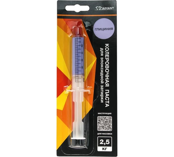 Колеровочная паста поставляется в шприцах и точно расфасована для колеровки эпоксидной затирки «Диамант» фасовками 1 кг. и 2,5 кг.
