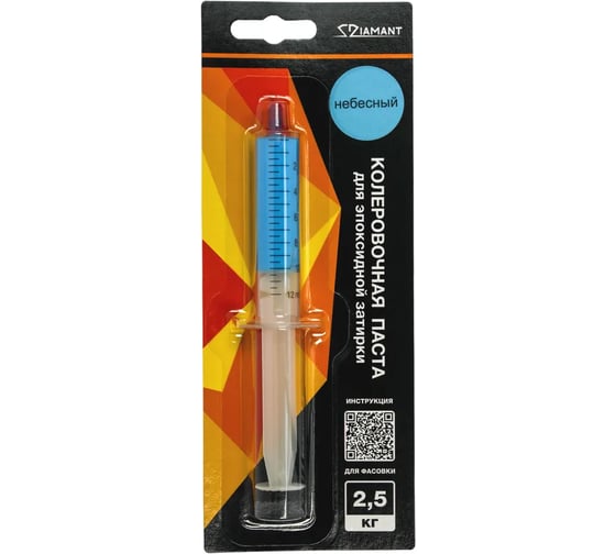 Колеровочная паста поставляется в шприцах и точно расфасована для колеровки эпоксидной затирки «Диамант» фасовками 1 кг. и 2,5 кг.