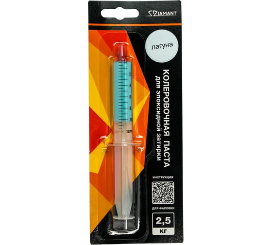 Колеровочная паста поставляется в шприцах и точно расфасована для колеровки эпоксидной затирки «Диамант» фасовками 1 кг. и 2,5 кг.