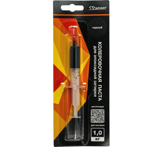 Колеровочная паста поставляется в шприцах и точно расфасована для колеровки эпоксидной затирки «Диамант» фасовками 1 кг. и 2,5 кг.